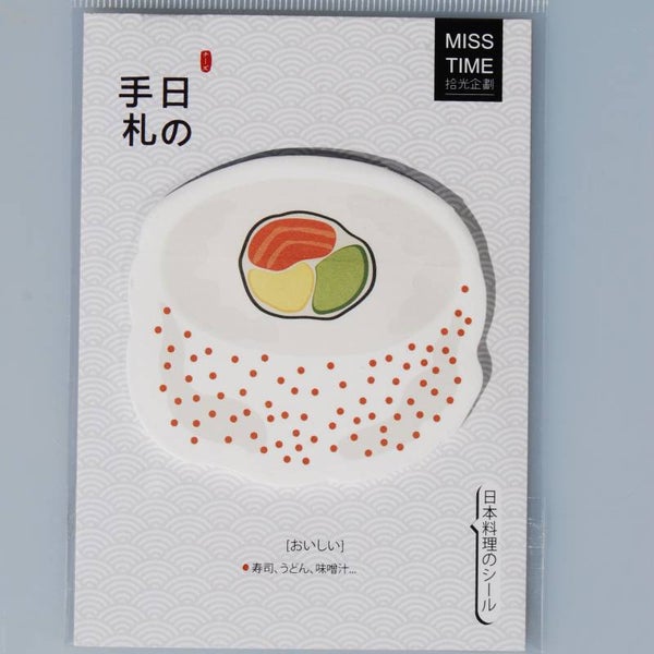 Kleine zelfklevende memo blaadjes in verschillende sushi soorten